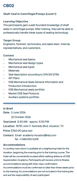 HB02: Shaft Seal in Centrifugal Pumps (Level 2)