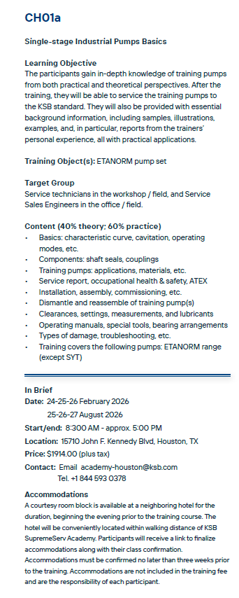 Get in-depth knowledge of training pumps from both practical and theoretical perspectives using the ETANORM SYT pump.