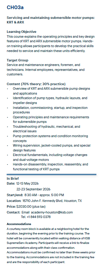 CH03a: Servicing and Maintaining Submersible Motor Pumps: KRT &ARX