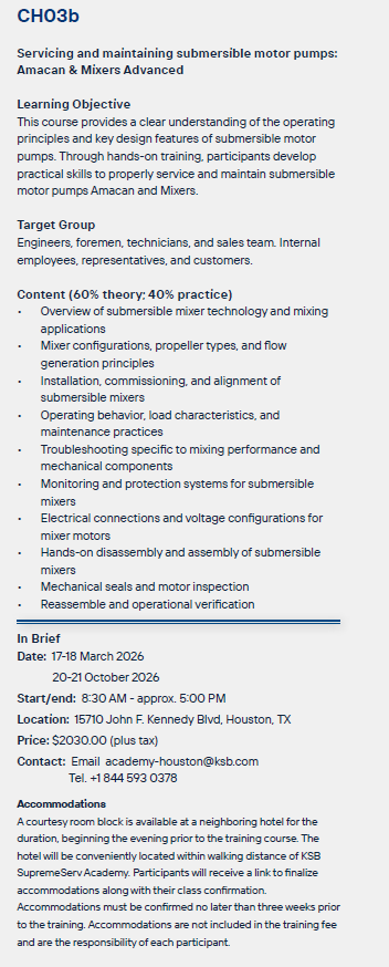 This course provides a clear understanding of the operating principles and key design features of submersible motor pumps.